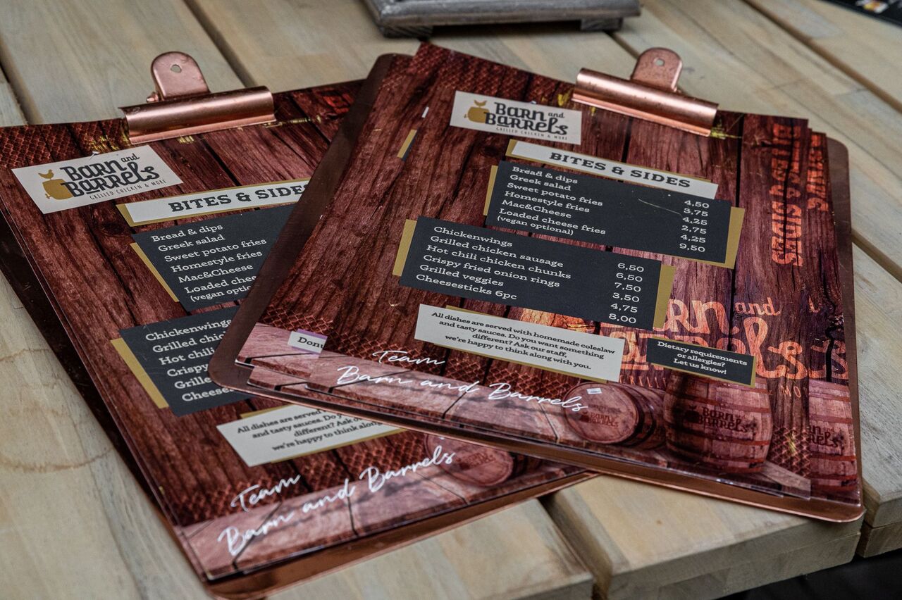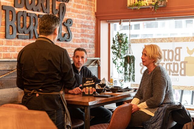 Schuif je kruk aan bij de bar, tafel, of op ons terras en proef de gemoedelijke sfeer van Barn and Barrels onder het genot van een hapje en een drankje. Reserveren? Dit kan online via ons reserveringssysteem